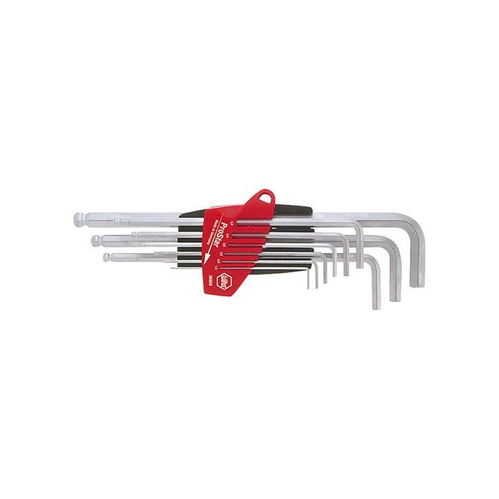 Winkelschraubendreher für Innen-6-kant-Schrauben mit Kugelkopf Satz lang 9-teilig matt verchromt, Wiha