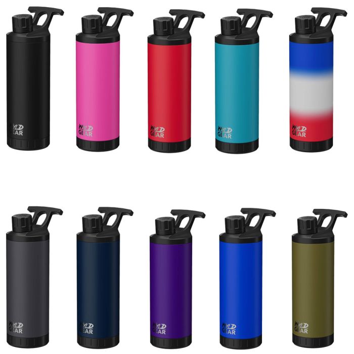 Die Mag Bottles gibt es in 4 Größen, in jeweils 10 stylishen Farben. Ideal fürs Training, Wandern, Reisen, Outdoorabenteuer, für die Schule, das Büro oder den täglichen Gebrauch im Haushalt. Lebensmittelverträglich, BPA-frei. Die doppelwandige, vakuumisolierte Schicht aus 18/8 rostfreiem Edelstahl hält die gewünschte Temperatur der Flüssigkeit und verhindert ein Schwitzen der Flasche an den Außenwänden. Der praktische Griff am Verschluss erleichtert das Tragen in der Hand. Der magnetische Verschluss verhindert das Verlieren des Deckels und ermöglicht ein schnelles Öffnen zur Flüssigkeitsaufnahme. Perfekt vorbereitet in jeder Alltagssituation sein, mit Wyld Gear!