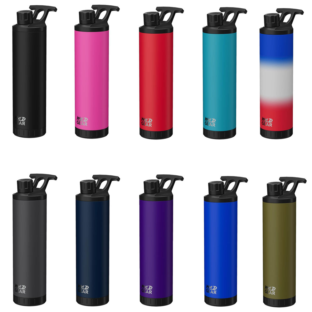Die Mag Bottles gibt es in 4 Größen, in jeweils 10 stylishen Farben. Ideal fürs Training, Wandern, Reisen, Outdoorabenteuer, für die Schule, das Büro oder den täglichen Gebrauch im Haushalt. Lebensmittelverträglich, BPA-frei. Die doppelwandige, vakuumisolierte Schicht aus 18/8 rostfreiem Edelstahl hält die gewünschte Temperatur der Flüssigkeit und verhindert ein Schwitzen der Flasche an den Außenwänden. Der praktische Griff am Verschluss erleichtert das Tragen in der Hand. Der magnetische Verschluss verhindert das Verlieren des Deckels und ermöglicht ein schnelles Öffnen zur Flüssigkeitsaufnahme. Perfekt vorbereitet in jeder Alltagssituation sein, mit Wyld Gear!