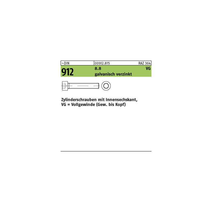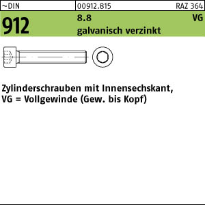 ~DIN 912 8.8 VG galvanisch verzinkt Zylinderschrauben mit Innensechskant, Vollgewinde (Gew. bis Kopf)